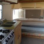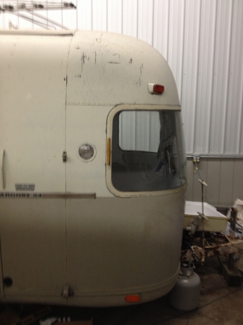 Shirley is a 1974 Airstream Argosy that we rescued from a farm in eastern Minnesota. Airstream Argosys are a close relative of the more well-known polished aluminum Airstreams. They were produced from 1972 until 1979. Argosys are made from painted steel. Ours is the 24 foot model that originally came with three beds, a full bathroom, kitchen and original avocado green countertops.